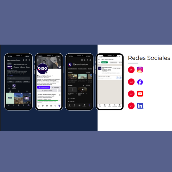 DIGO contaba con una identidad visual débil, sin marca registrada y con una presencia digital que no reflejaba la calidad técnica de sus obras. La comunicación carecía de orden y consistencia, lo que dificultaba su posicionamiento frente a empresas industriales más consolidadas.